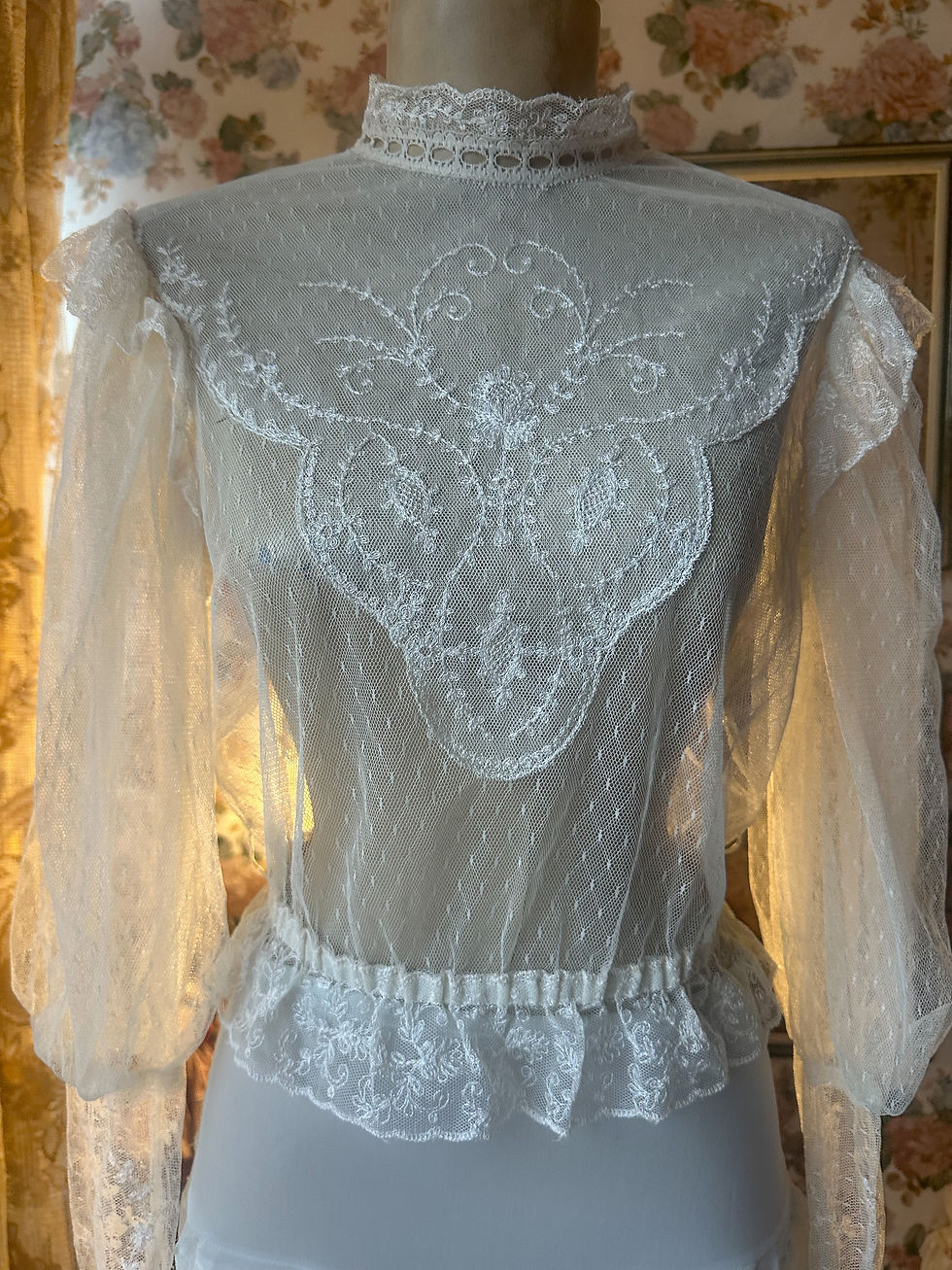 blusa vintage americana revival era Eduardiana toda em rendas Model